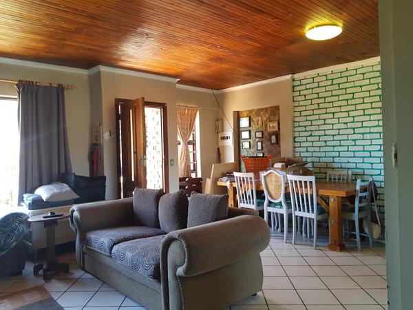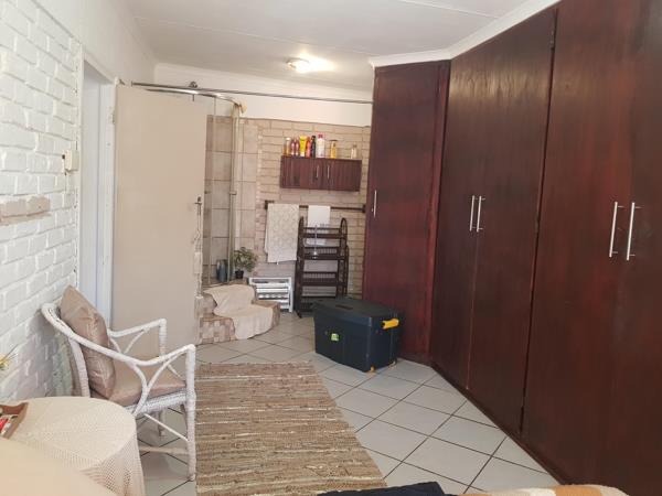 This property set on a 600m2 stand offers: Main house 3 bedrooms, 2 bathrooms, kitchen lounge, enclosed patiobraai area. The flat which is separate with own entrance has 3 beds 2 baths, and lounge open plan kitchen to dining room. There is a large lock up garage and undercover carport and extra paved parking. Large back garden. The property does need a little TLC, but for the area it is worth the investment. Pool will be removed.