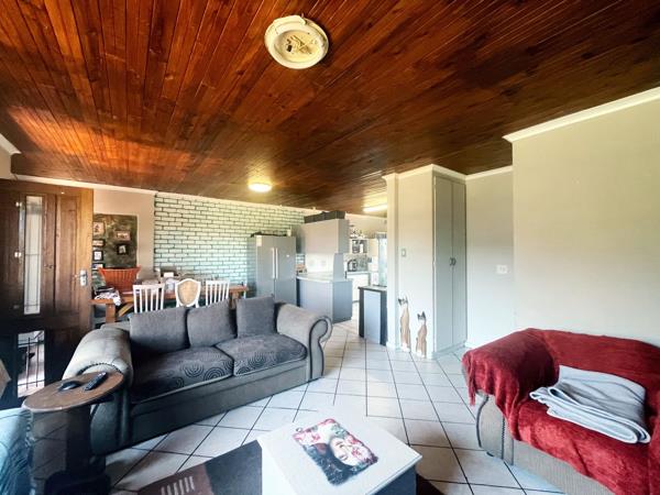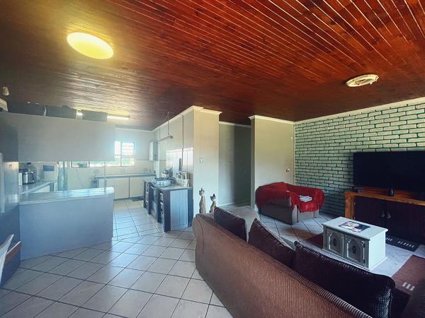 The main house features a welcoming lounge and dining area, a large kitchen with a separate scullery, three bedrooms, and two bathrooms. The spacious garden and inviting splash pool offer a perfect outdoor living space for relaxation and entertaining. Additionally, theres a single garage with extra space, larger than the average single garage.