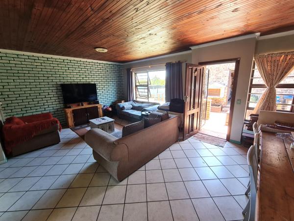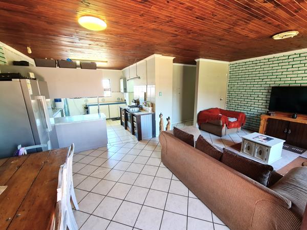 Main house has 3 bedrooms and 2 bathrooms mes. Lounge and dining area, and an enclosed braai area. Single garage and ample parking.