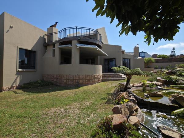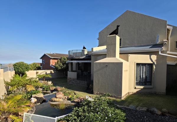 The dining area, seamlessly integrated into the exceptional open-plan kitchen, makes cooking and entertaining effortless. This space flows through a door onto a covered patio with a built-in braai, offering generous space for entertaining while overlooking the beautifully landscaped garden. The soothing sound of water from the handcrafted water feature adds a tranquil, luxurious atmosphere.