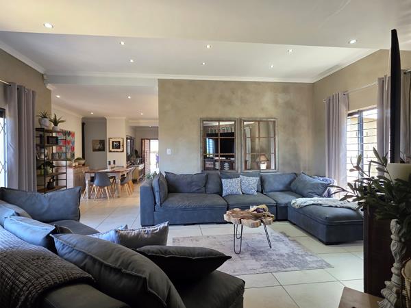 From the moment you step through the front door, you are welcomed by an immediate wow factor. A striking entrance portal leads into a spacious, designer kitchen featuring granite countertops, ample workspace, and an abundance of cupboardsevery womans dream. The scullery is cleverly hidden behind the wall, keeping the kitchen neat and functional.