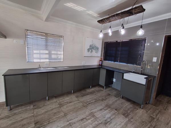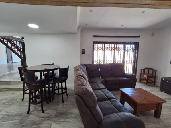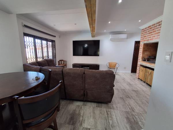 - Open space living areas and a braai room with an open deck and a sparkling pool