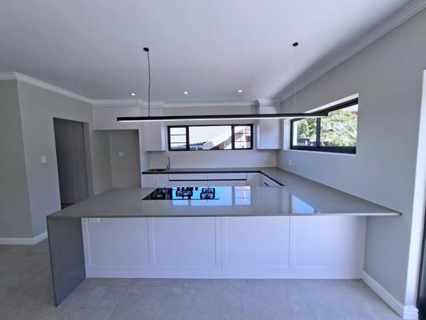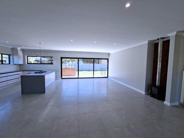 This stunning newly built home of 297 m² sits on a 600 m² erf, combining style, comfort, and functionality. Featuring spacious living areas, the property offers 3 bedrooms and 2 bathrooms, including a luxurious main en-suite and a full second bathroom. Two of the bedrooms open onto the garden with sliding doors, perfect for indoor-outdoor living.
