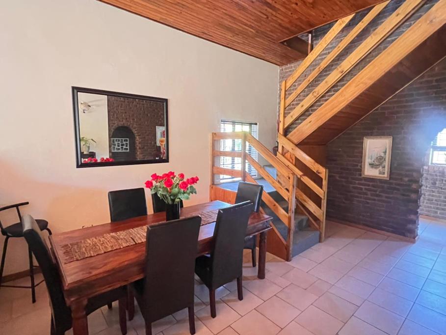 Inside, the open-plan living areas flow seamlessly between the lounge, dining space, and a well-equipped kitchen with a separate scullery perfect for daily family life and entertaining guests. Large windows allow natural light to fill the home while offering lovely views of the kloof, creating a warm and welcoming atmosphere.