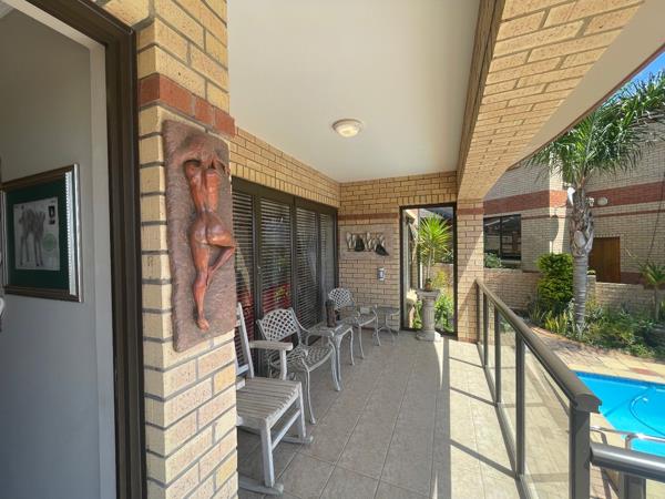 The staircase leads to an open- concept living space flooded with natural light, features clean lines and premium classic finishes. The area consists of the spacious TV room, dining room, study and gourmet kitchen of note, including a separate scullery. The kitchen is strategically positioned near the entertainment area perfect for creating unforgettable memories with loved ones and friends! A spacious balcony flows through stacked doors from the reception area from where this panoramic views can be enjoyed in its fullness! To the left is the spacious master suite boasting a lavish en-suite bathroom and ample cupboards. A door leads to a private balcony where you can enjoy peaceful moments with a cup of coffee while breathing in the views in front of you!!