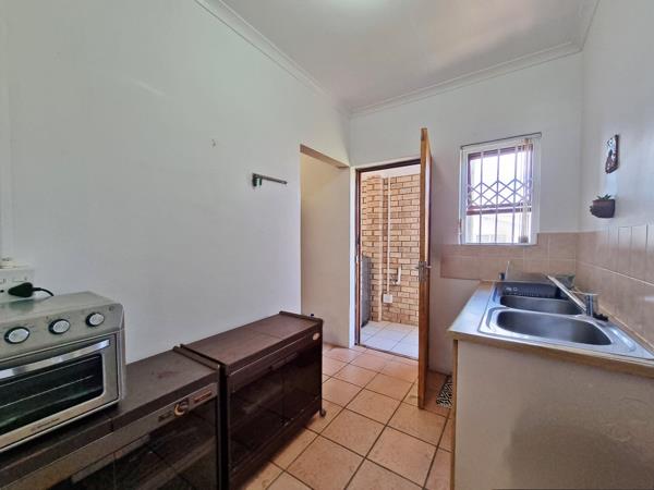 The main house opens into a warm, secure entrance leading to an open-plan lounge and dining area. The trellidoor separates the living areas from the bedroom wing, adding an extra layer of security. The kitchen is complemented by a separate scullery with direct access to the spacious backyard, making everyday living practical and convenient.