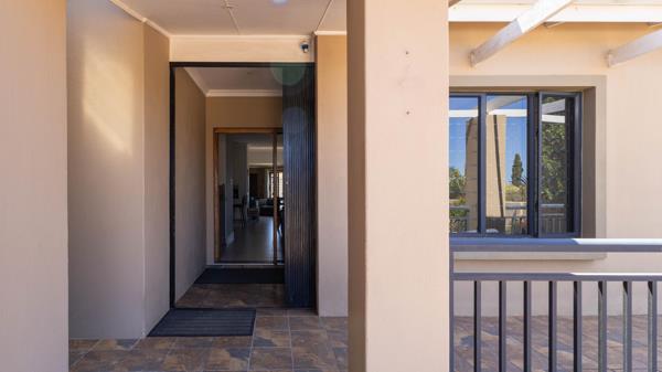 The covered patio is a winnerbig, sheltered from the prevailing wind, and set up with a built-in braai. Its north- and east-facing too, so its protected and usable in all weather. Add the gentle sound of the larger water feature and its just a really relaxing space to entertain or unwind.