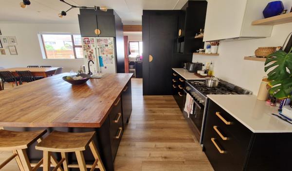 The modern kitchen is both stylish and functional, featuring a custom island, a separate scullery, and a cosy coffee nook for your morning routine.