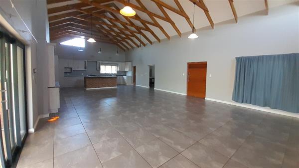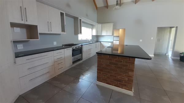 The home opens into the open plan living dining area with fitted kitchen. This area is spacious enough for everyone in the home to get together around the indoor braai. Off the braai area are the glass doors leading onto the big covered patio allowing for great outside entertainment. The kitchen with its pantry, island and gas stove also has place for a big fridgefreezer. The separate scullery laundry has place for the dish washer and is super for keeping dishes and washing out of sight.