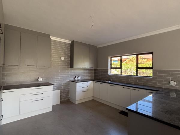 The kitchen is modern, functional, and well thought out, offering ample workspace along with a separate scullery that keeps the main area neat and uncluttered. Direct access from the garage into the home adds an extra layer of convenience, especially on busy days.