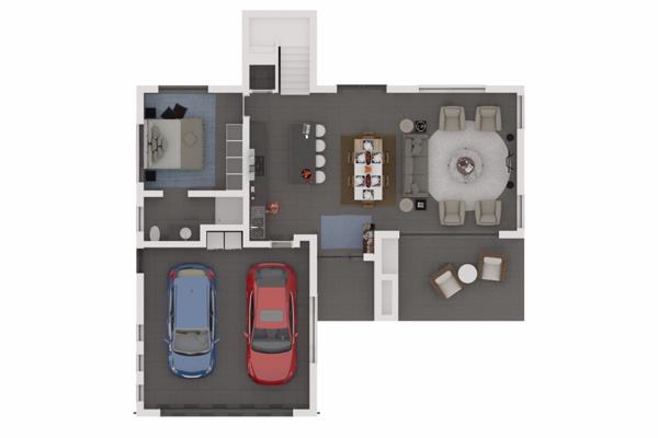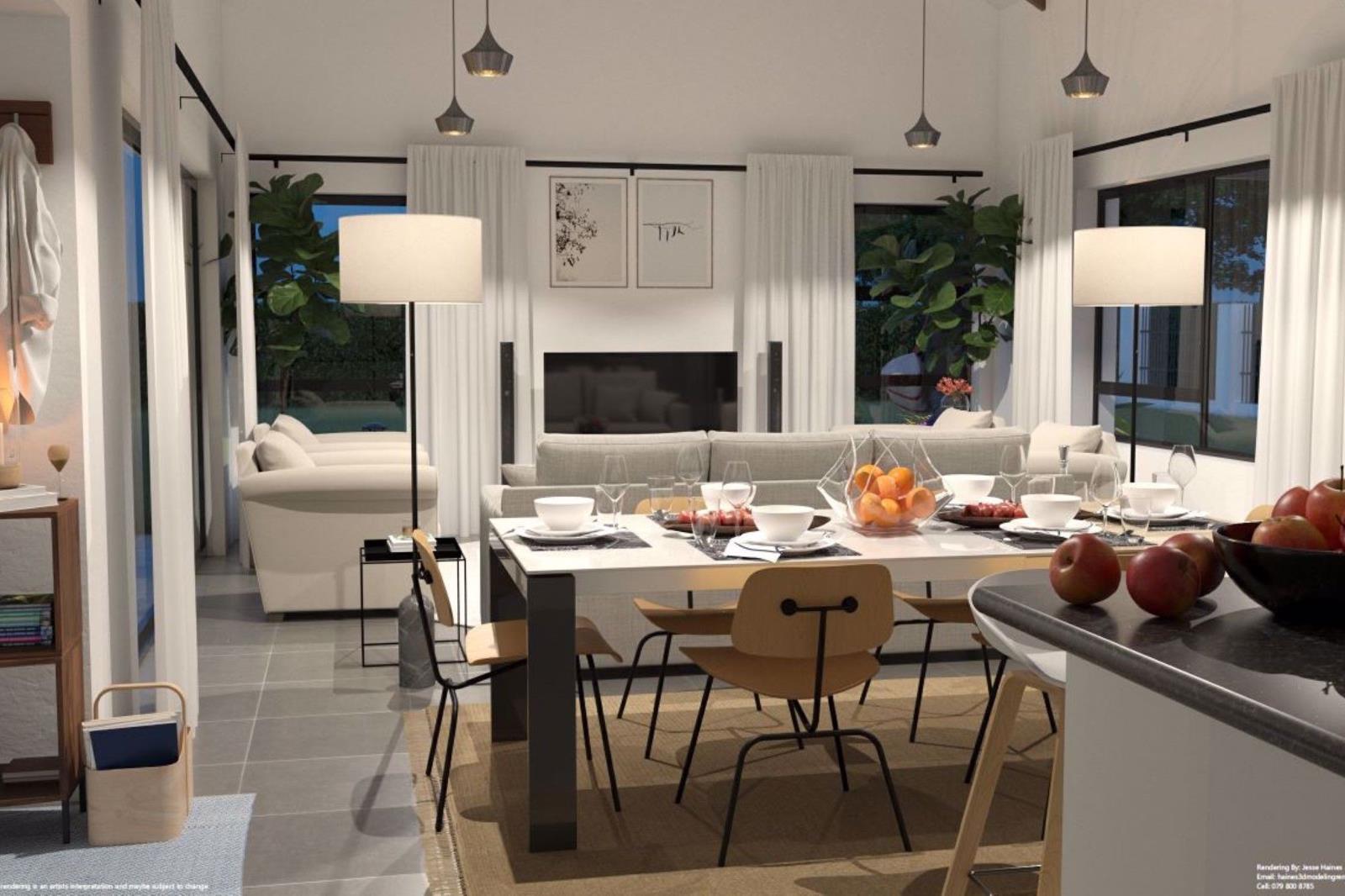 The three bedrooms are well sized and all en suite, with one located downstairs, for those who cant manage stairs so easily. Upstairs is also a studyoffice area, ideal for those who work from home. The main bedroom has a full bathroom and all the bedrooms have plenty of wardrobes. Sites 1 and 50 have the option to be three bedroom single storey 189m2 at R3.296m