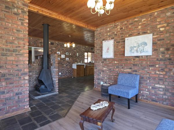 The spacious dining area, complete with a cosy fireplace, enhances the homes inviting character. The well-appointed open-plan kitchen includes a separate pantry, with an additional laundry room for convenience. A sliding door leads to an expansive TV lounge fitted with a built-in braaian ideal space for hosting family and friends.