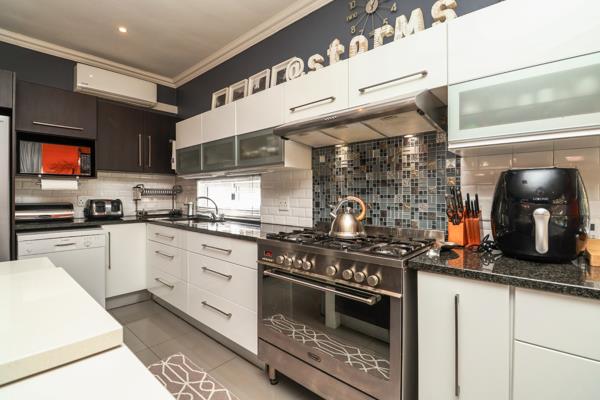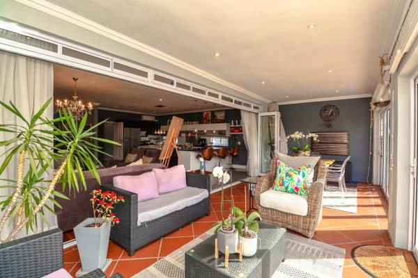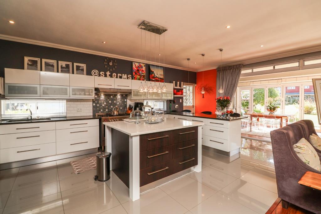 Step into a unique lifestyle in the charming and world-renowned village of Storms River, where international tourists and nature lovers flock year-round to enjoy its beauty and tranquility. This spacious, light-filled home opens into an elegant open-plan living space that combines the kitchen, dining area, lounge, and sunroom, all accentuated by beautiful chandeliers and designer lighting. The gourmet kitchen has granite countertops, a double sink, under-counter lighting, and a central island perfect for entertaining. Sliding stacking aluminium doors lead to a north-facing sun patio with a built-in braai, offering seamless indoor-outdoor flow. Finishes include a tasteful mix of laminate flooring, tiles, and soft carpeting in the bedrooms for added warmth and comfort. The home features a dedicated office, linen and grocery cupboards, and an efficient laundry area.