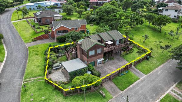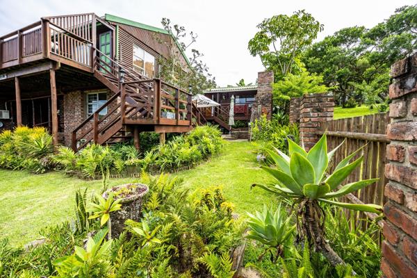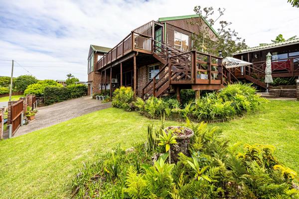 7 Bedroom Home for Sale in Cintsa. This established self-catering accommodation is a spacious double-storey home situated on a prime corner plot, featuring three remote-controlled entrances and offering breathtaking panoramic river views.