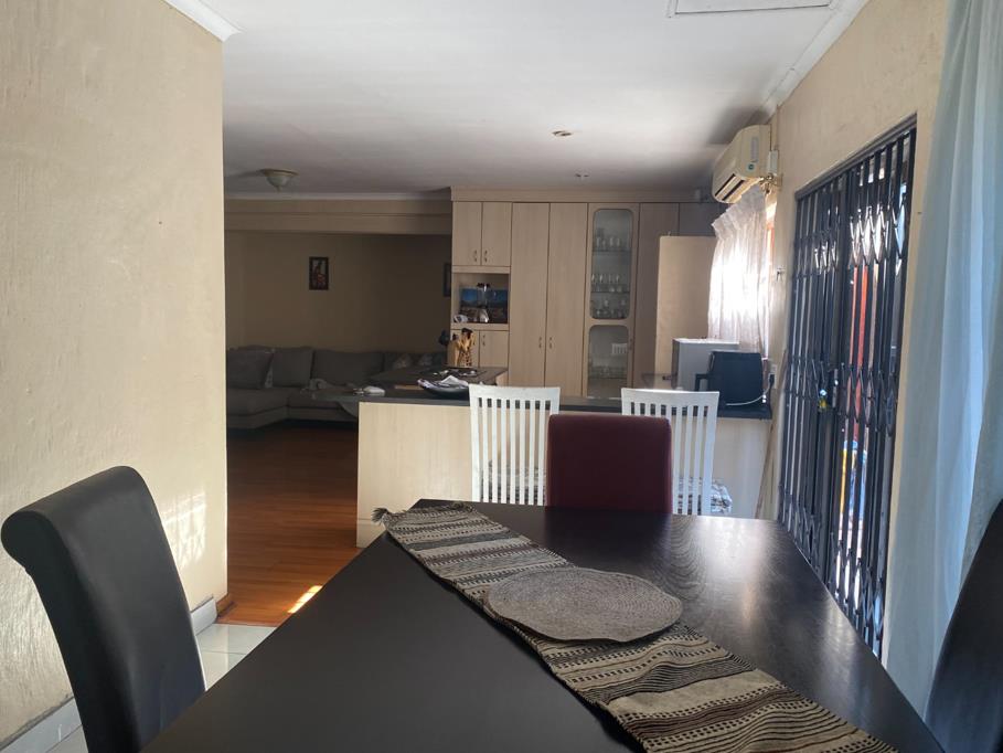 Step into an open-plan layout that includes a cosy living area, TV room, and dining room, all flowing into a well-equipped kitchen with ample cupboard space and a separate scullery. The ground floor features the main bedroom with an en-suite bathroom, a second bedroom, and another full bathroom.