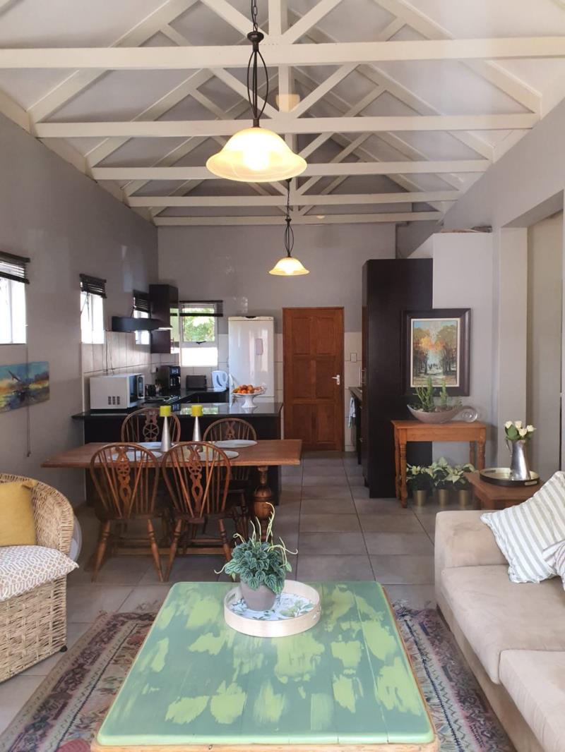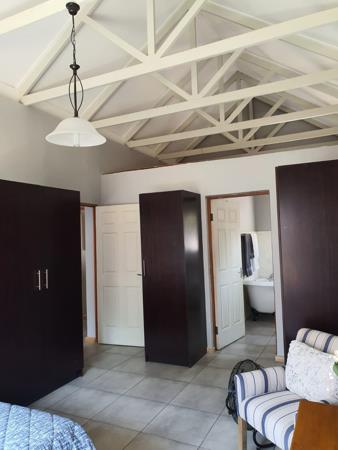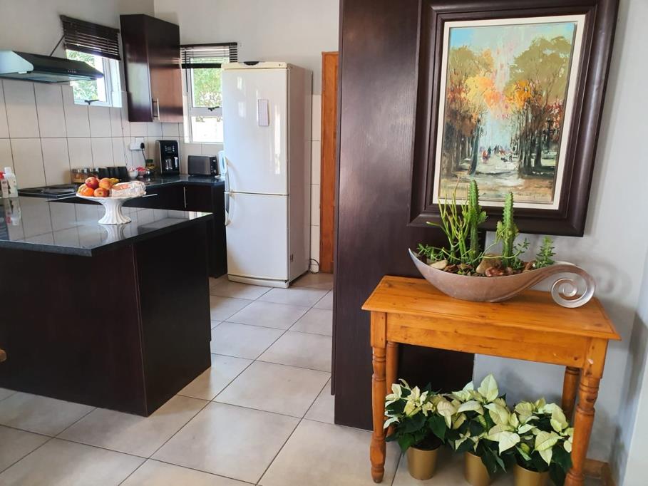 The well-designed kitchen features granite countertops, an under-counter oven, hob, and ample cupboard space. The open-plan layout flows seamlessly from the kitchen to the spacious living area and out to the covered patio, where you can relax while overlooking the tranquil, well-sized garden perfect for pets or children to enjoy.