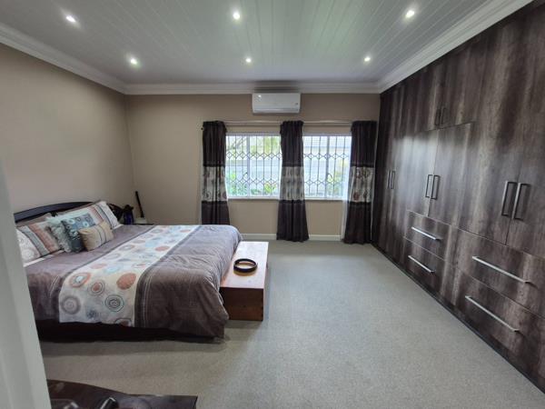 This inviting 4-bedroom, 2.5-bathroom family home in Bayswater, Bloemfontein, offers comfort and practicality. The property presents excellent kerb appeal with a well-maintained front lawn and mature trees. Ample secure parking is a key feature, boasting a large modern carport, an additional gated covered parking area, and an integrated single garage, all accessed via a paved driveway.