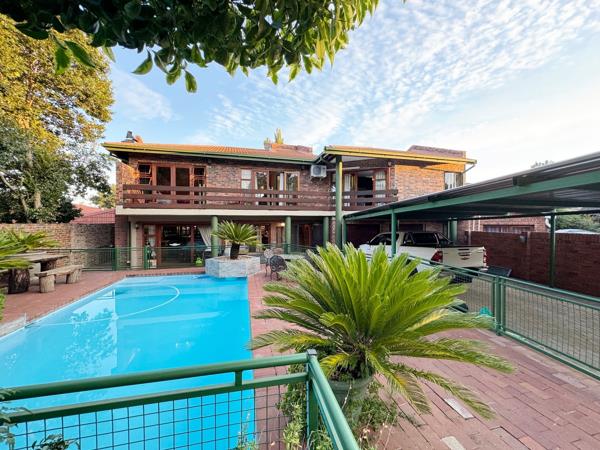 Parking is well catered for with two garages and a carport accommodating up to four vehicles. A Wendy house, currently utilised as a home office, as well as outside domestic quarters, add further versatility to this property.
