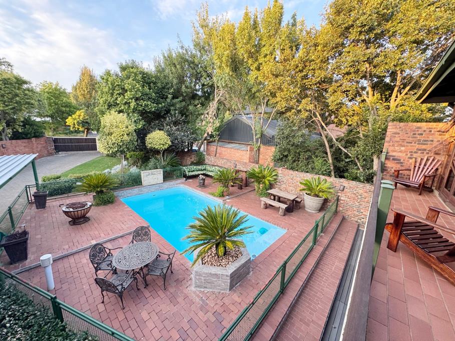 Downstairs features a seamless open-plan kitchen with separate scullery, flowing into the dining and TV room. The entertainment space is enhanced by a built-in bar and built-in braai, perfect for hosting family and friends.
