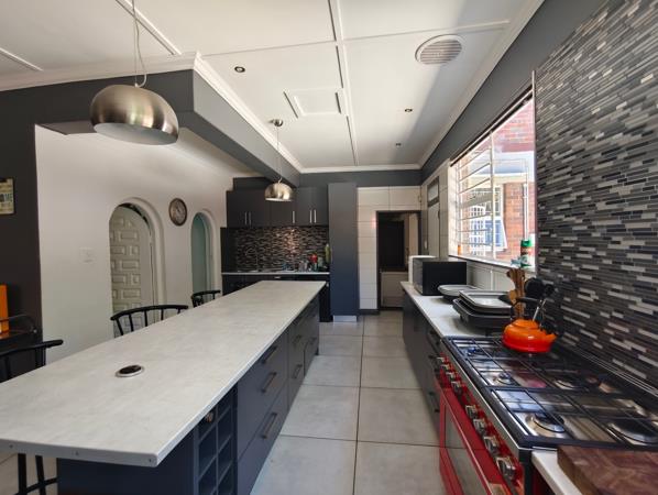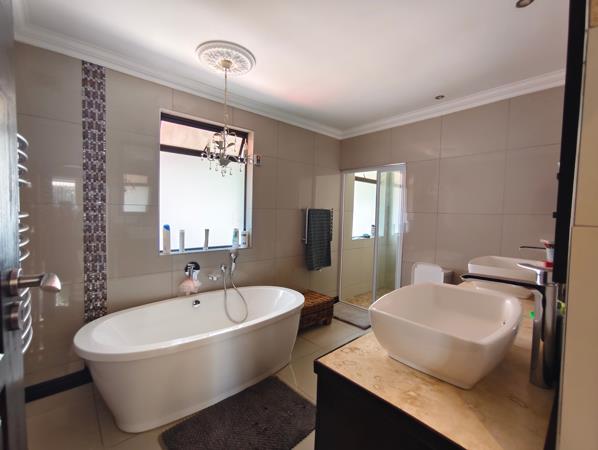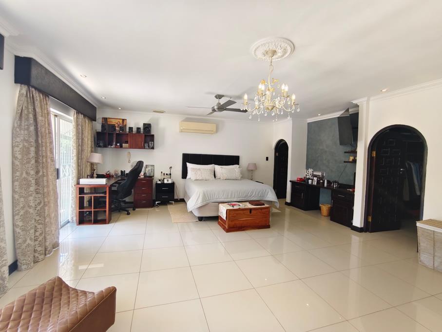 Family Space- 5 bedrooms all with walk-in cupboards- 3-5 bathrooms main en-suite- Lounge, dining, TV room & bar- Fully tiled throughout- 2 outside rooms ample secure parking for domestic workers or passive income.