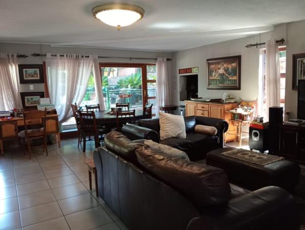 The property offers an open-plan lounge, dining, and kitchen area, ideal for entertaining, featuring a contemporary bar and indoor braai.