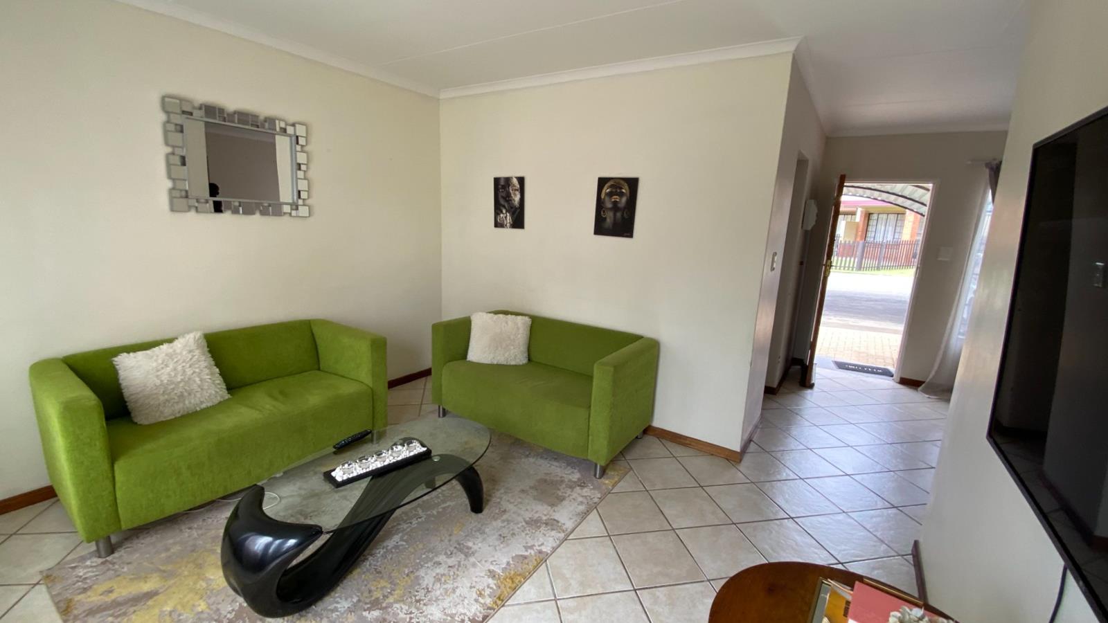 This townhouse consists of Two bedrooms with built in cupboards, two bathroom, lounge, kitchen with built in cupboards&Stove and your own private garden