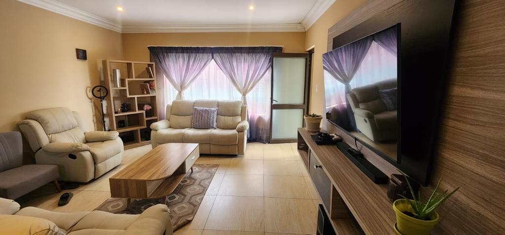 Embrace easy living in this stylish 3-bedroom townhouse nestled in the desirable Hillside area of Bloemfontein. Enjoy the unparalleled convenience of being located just moments from Northridge Mall and top-rated schools. The open-plan layout seamlessly connects the tiled lounge, dining area, and modern kitchen, perfect for entertaining. Unwind in the spacious main bedroom with its own en-suite bathroom featuring a shower and bath, air conditioning, and generous built-in cupboards. Two further bedrooms offer comfortable accommodation with built-in storage and their own en-suite and family bathrooms. Enjoy outdoor living on the covered patio with a built-in braai, ideal for weekend gatherings, or on the private balcony. Benefit from a single garage, carport parking, and the added bonus of a communal swimming pool for those hot summer days. This secure, fully walled, and pet-friendly townhouse offers the perfect blend of comfort, convenience, and a prime location.