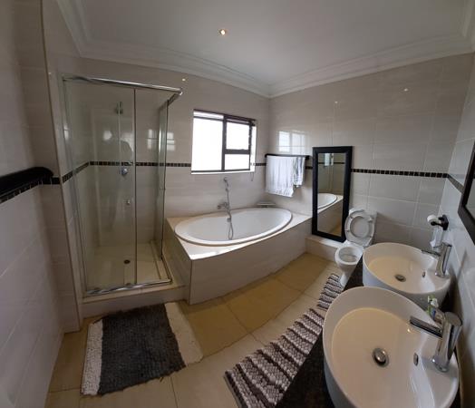 This beauty offers 3 spacious bedrooms, all en-suite (with the 3rd conveniently downstairs). The main bedroom features an aircon, and the entire home is fully tiled for easy living. Enjoy a modern open-plan kitchen, dining and lounge area flowing onto a covered veranda with built-in braai, overlooking a lush, green garden.