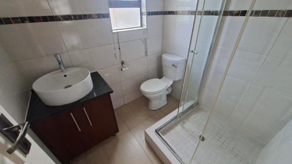 Guest Bathroom: Fully tiled with shower, toilet, and basin