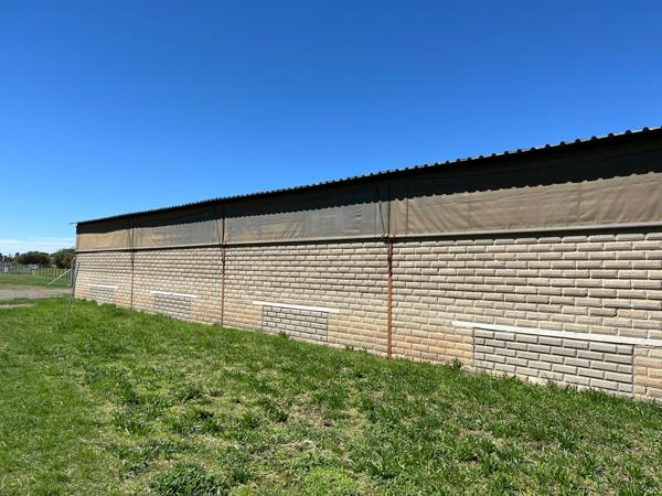 2 180 m2 toegeboude store, een met ''n sementvloer vir hoenderproduksie en 1 vir algemene opberging en hantering.