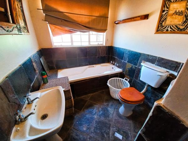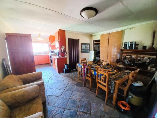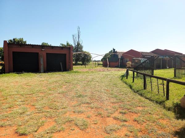 A comfortable 3-bedroom, 2-bathroom family home sits at the heart of the plot, offering tiled floors throughout and a spacious open-plan kitchen and dining area, ideal for family gatherings. The home also includes a lapa with a built-in braai for relaxed country entertaining, with easy access to the totally walled swimming pool (requiring some TLC). Pre-paid electricity is already installed.