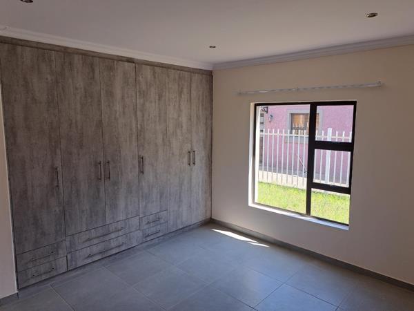 The property is situated in the security complex Eden Park.. It has an open plan layout kitchen, lounge, and dining room. The kitchen has enough cupboard space, it is beautiful with the latest style. The main bedroom has an en-suite bathroom and built-in cupboards. The other two bedrooms have enough space with built-in cupboards. Tiled floors throughout the house.