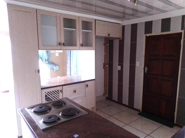 The main bedroom includes an en-suite bathroom with a sliding to the back yard, and three of the four bedrooms are equipped with beautiful built-in cupboards. The property features a fully paved yard, a lockable carport, and additional parking for two cars. Fully fenced and in pristine condition, this home offers modern living at its best, with a built-in braai place outside and ample space to entertain friends and family on the weekends afternoon! Additional to the property you find a flatlet of 3 rooms which can be rented out for extra income or used as a store room, laundry or kids play room.