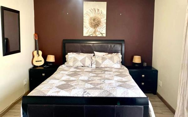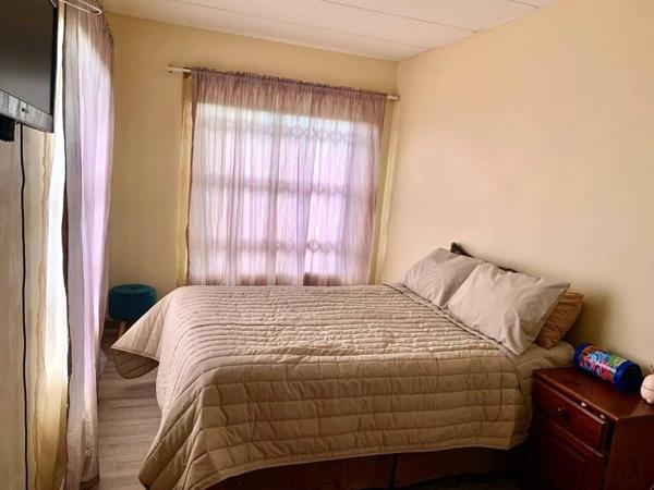 This stunning double-story home in Mandela View offers the perfect family retreat. Upstairs you will find 3 spacious bedrooms with BIC including a master suite with an en-suite bathroom. The open-plan downstairs features a large kitchen, perfectfor family gatherings. The home is secure, with burglar-proof doors and wiindows, and a fenced yard with a beautiful mature flower garden and an irrigation system that can be revived.