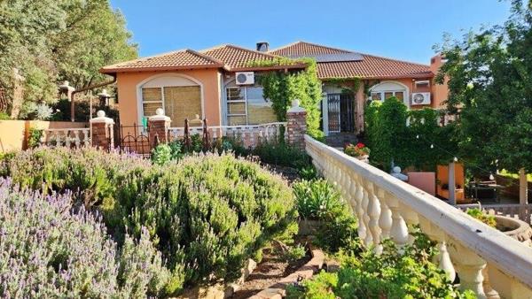 Boasting six spacious bedrooms and four beautifully designed bathrooms, the home caters effortlessly to multi-generational living or luxury guest accommodation. The flowing entertainment areas spill out onto expansive verandas, patios, and a shimmering poola setting that feels more Mediterranean than Free State. Two of the bedrooms, along with their own bathroom, kitchen, lounge, and patio, form a fully self-contained flatletideal for guests or private use.