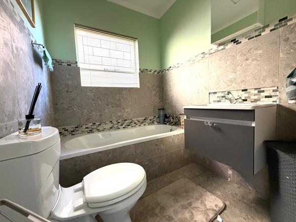 The property features two neat bathrooms, including a main en-suite, and an open-plan dining area seamlessly connected to a modern kitchen with a built-in stove and separate scullery. The spacious lounge flows effortlessly to a private, pet-friendly gardenperfect for outdoor entertaining or unwinding in peace.