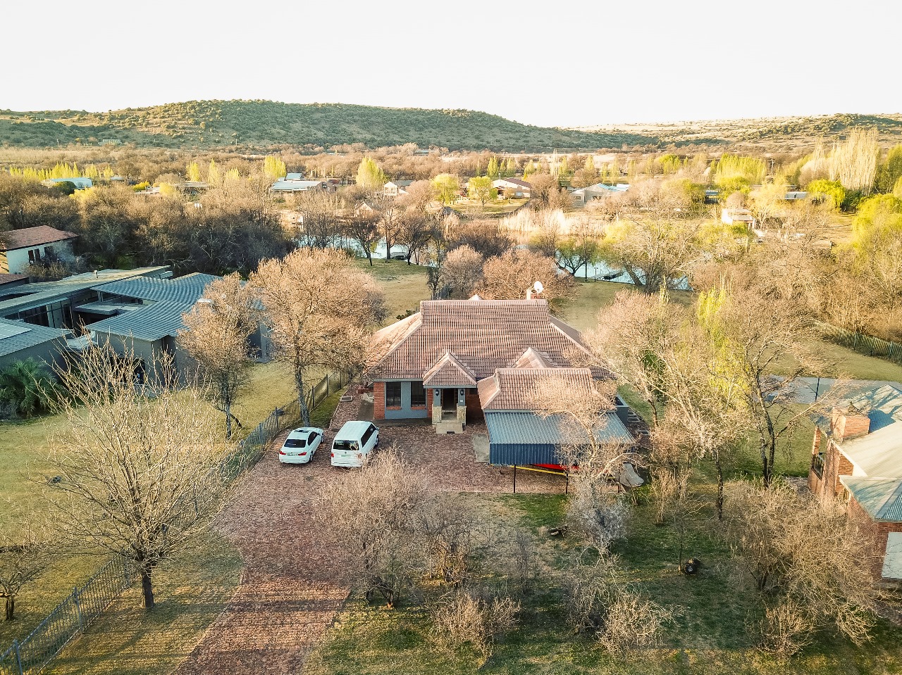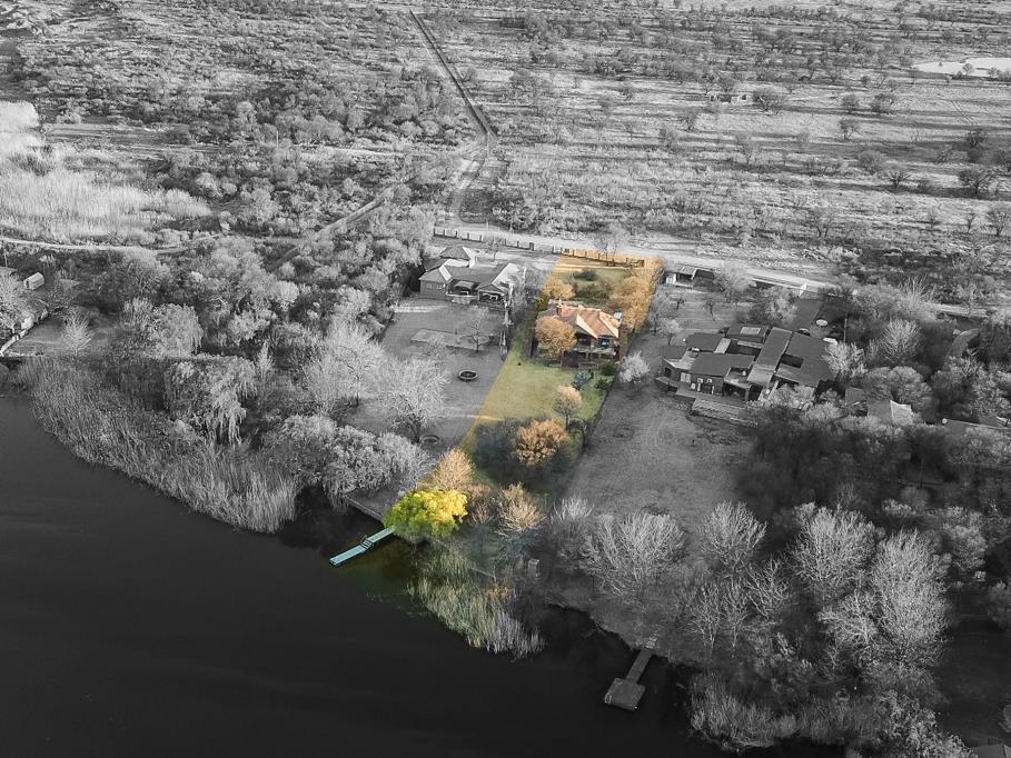 The double story home offers an open-plan living area, with a modern kitchen, dining room, living room and entertainment area that open up to a big veranda, with a boma overlooking the stunning modder rivier..