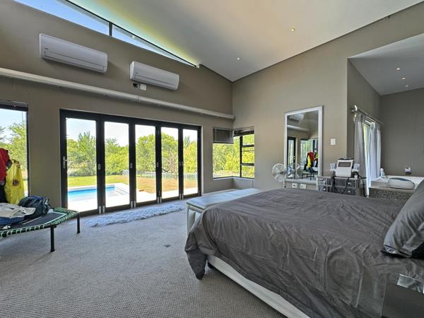 Nestled in a prime riverfront location, this exquisite property offers a seamless blend of luxury, serenity, and architectural brilliance. The dramatic entrance hall, featuring a tranquil koi pond beneath the floor, sets the tone for the entire residence. As you step inside, expansive windows invite natural light, enhancing the open-plan design of the family room, dining area, and gourmet kitchen. The kitchen is a chef''s dream, equipped with modern built-in cupboards, a gas stove, an eye-level oven, and a spacious scullery.