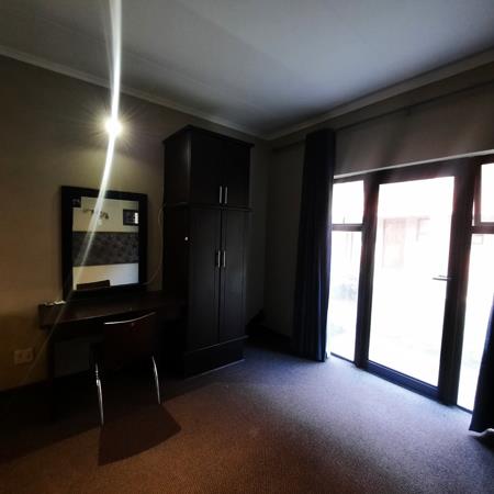 Discover a stunning 1-bedroom apartment that boasts a cozy double bed, built-in cupboards, and soft carpets.