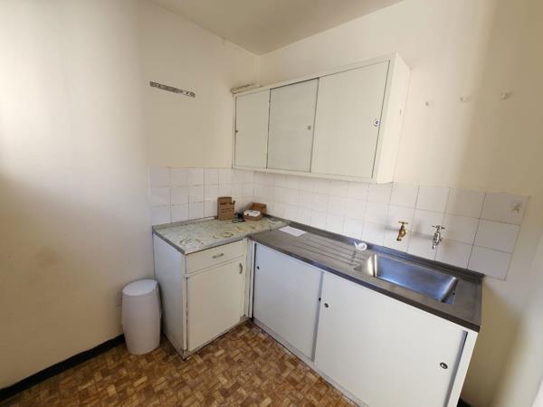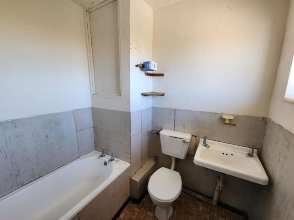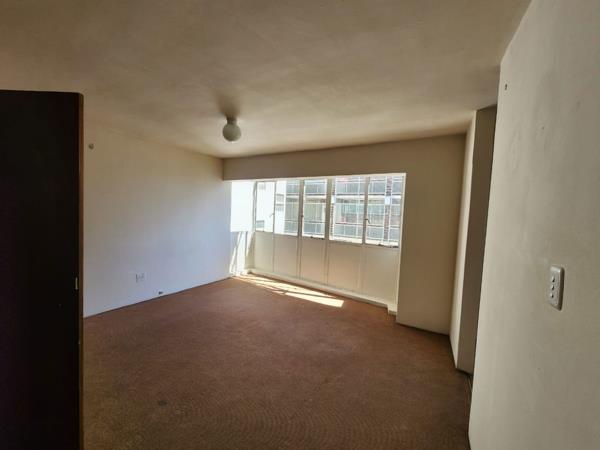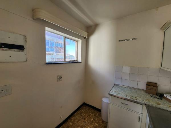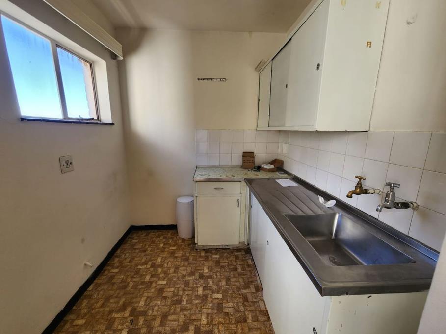 1 bedroom apartment for sale in cbd. This one-bedroom apartment in the CBD features a kitchen, bathroom with a bath, basin, and toilet. The bedroom has built-in cupboards and can accommodate two single beds with space for a reception area. The room is also equipped with a geyser and has carpeted floors.