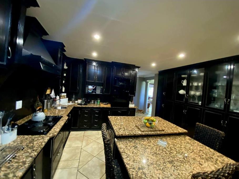 An under-roof swimming pool with a built-in braai and entertainment area, complete with a private bar.