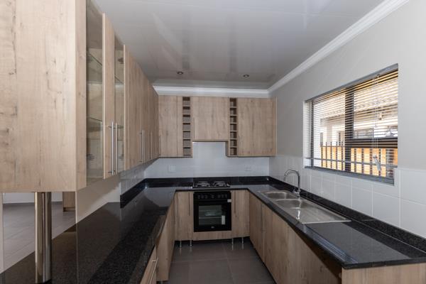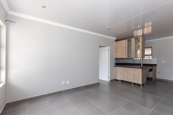 76m2. Single story 3 bedrooms, 2 bathrooms, stylish kitchen with well-designed kitchen cupboards and colour stone kitchen top. Separate living and dining rooms. Main bedroom has en-suite. Fully devil fork fenced private spacious garden.