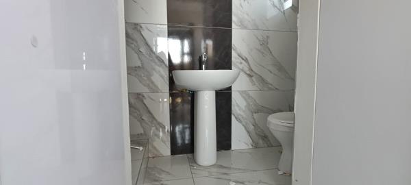 With three well-appointed bedrooms, each fitted with glossy, modern built-in cupboards, this property offers both style and functionality. The main bedroom boasts its own en-suite bathroom, while a second full bathroom serves the other two rooms and guests.