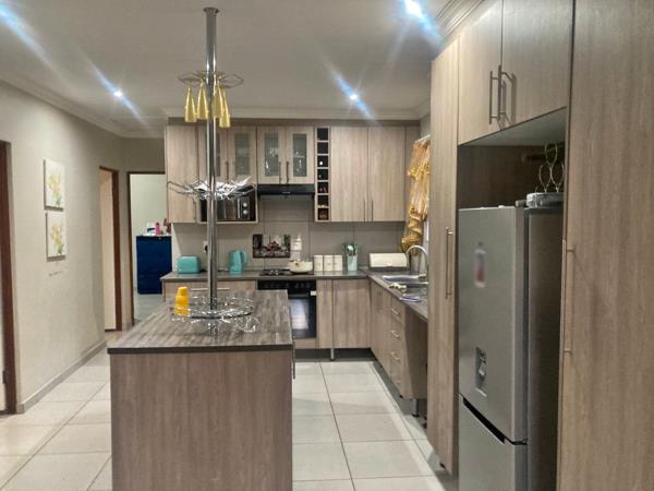 Step inside to find a spacious open-plan layout that seamlessly connects the lounge, dining area, and modern kitchen perfect for relaxed family living or entertaining guests. A gas geyser ensures warm showers and energy efficiency all year round.