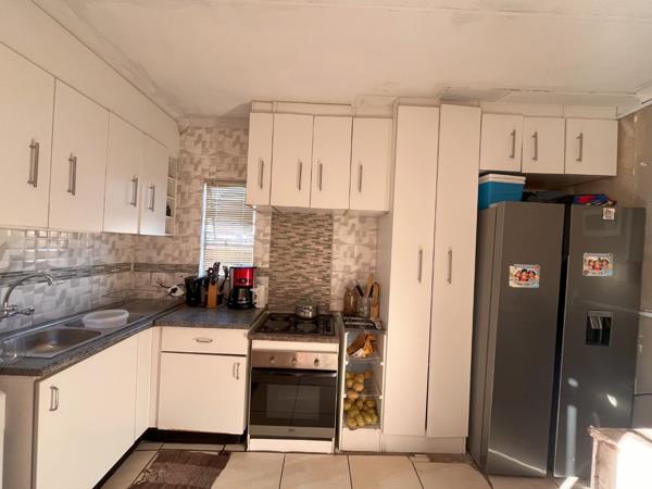 Step outside into a fully fenced yard, where a generous garden space awaits, ideal for kids and pets. The entertainment area flows seamlessly to a built-in braai, setting the scene for memorable gatherings.