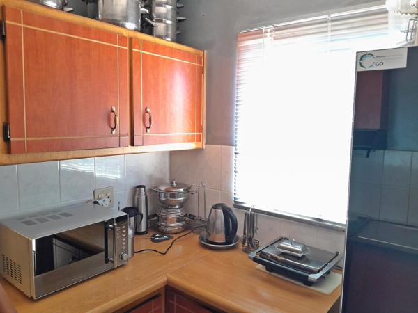This beautiful 2-bedroom home features an open-plan layout with a cozy lounge and kitchen, plus a single bathroom. It offers built-in cupboards in one bedroom, a well-maintained garden, and a spacious yard ideal for future extensions. The property includes a carport that fits two cars, with additional parking space available.