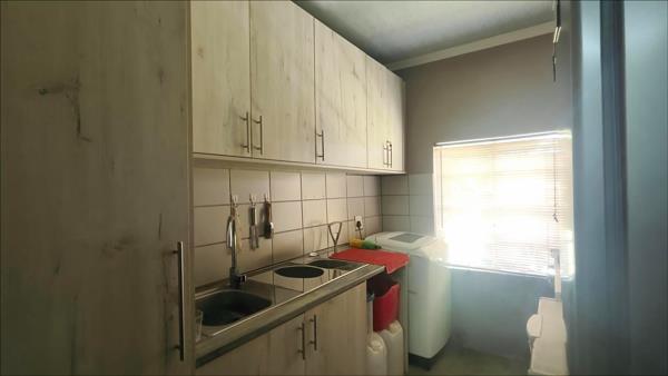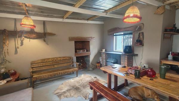 An inviting entertainment and braai area adds warmth and character, perfect for hosting guests in a relaxed, rustic atmosphere.