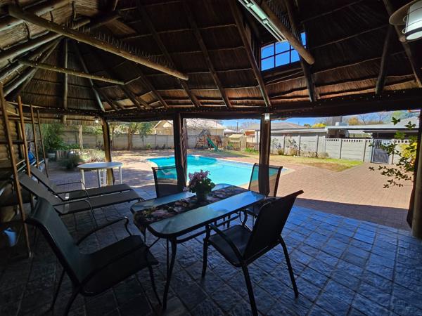 If youre a family searching for your next home, this one is a jackpot! Perfectly located on the doorstep of Sentraal High School, just a stones throw from Willem Postma Primary and within walking distance of Preller Square. Step inside to a welcoming foyer that flows into the first family entertainment room. From here, youll find a second living area with a lounge and dining room, opening out to the braai lapa, garden, and sparkling pool. The dining area connects to a neat, modern kitchen ideal for family living and entertaining.