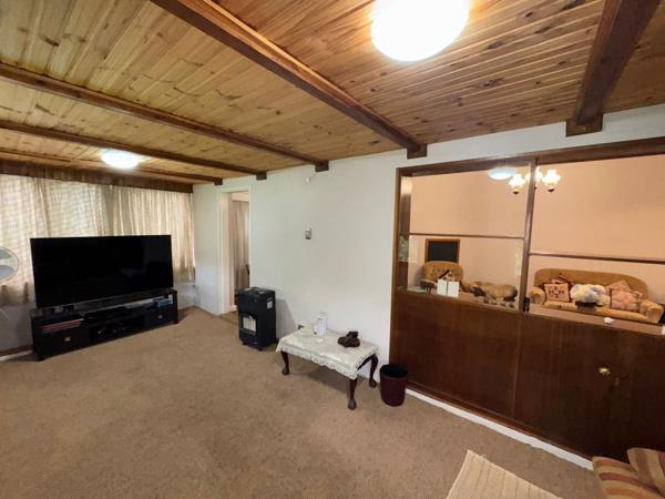 The established front garden and sparkling pool create an inviting first impression. Inside, the home offers a farm-style kitchen with wooden cupboards, built-in stove, pantry and separate scullery, three spacious living areas with wooden floors, three well-sized bedrooms, and two bathrooms main en-suite. The vintage-style ceilings add to the homes warmth and character.