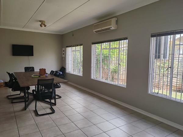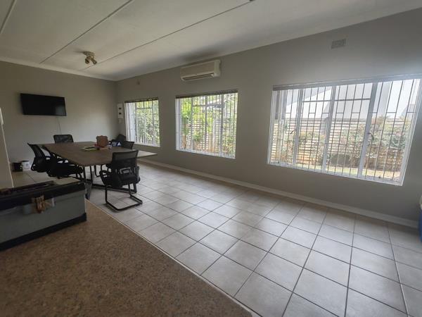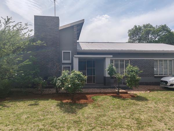 This is a lovely family home in a very visible street - ideal if you want an easy address. The property is currently been used as an office but is a really nice family home near schools and shopping centres but with a visible address. The whole house is tiled with open plan living area kitchen, three bedrooms and one bathroom to the one side and a huge and beautiful master bedroom with en-suite bathroom on the other side. ''n Nice kuierstoep to the northern side and a flatlet at the back. Single garage with a carport for 3 vehicles.